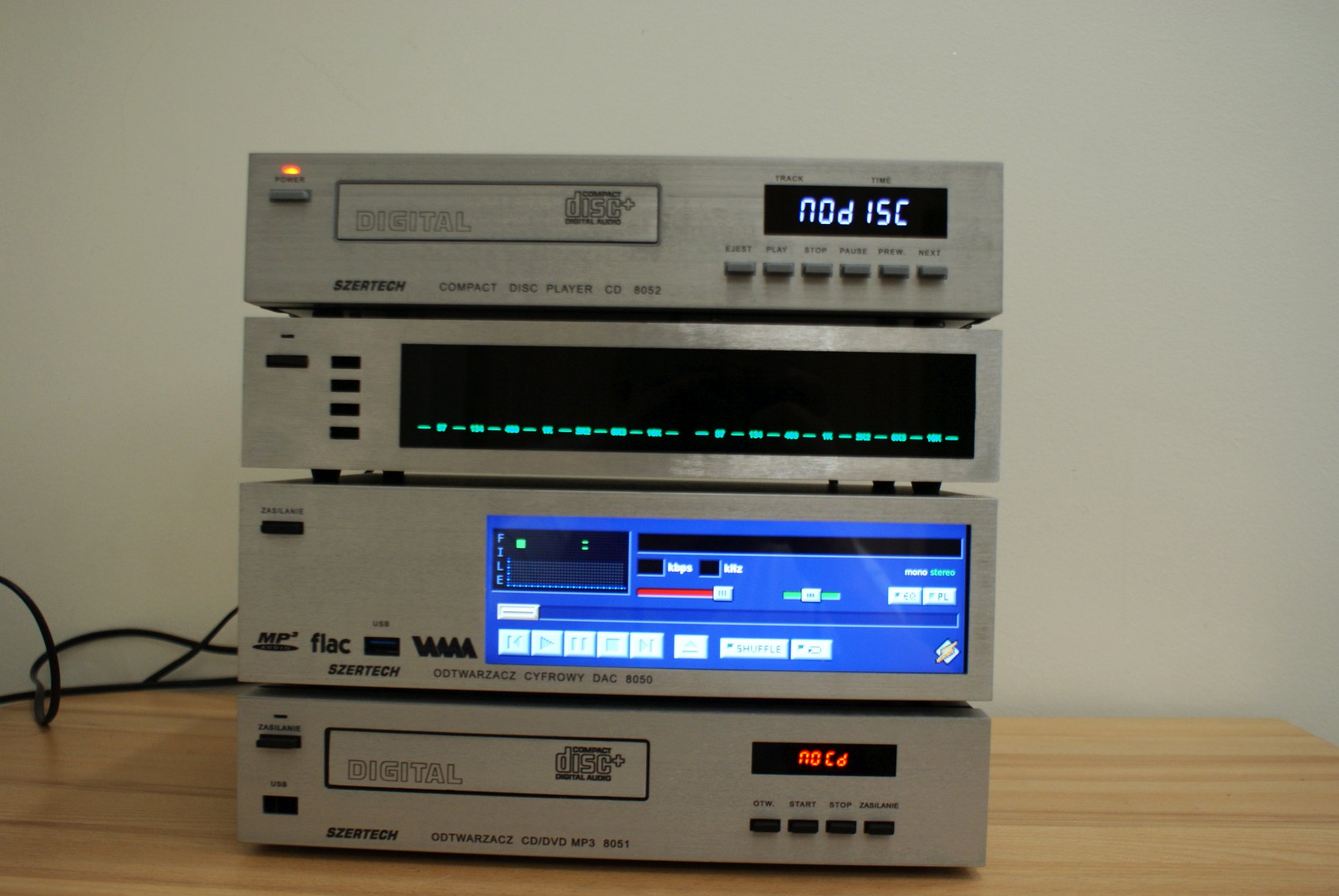 Tak się prezentują pierwsze prototypy. Wszystko jest dedykowane do zestawu ZM 8000. Pierwszy powstał CD/DVD, następny był odtwarzacz cyfrowy mp3 typu winamp, potem compact disc i jako ostatni analizator widma.